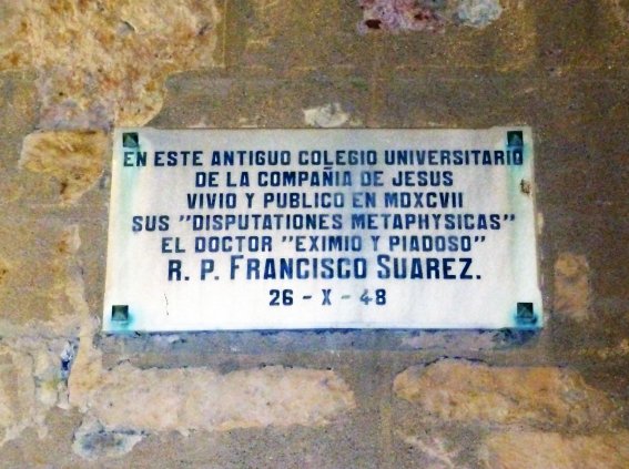 EN ESTA CASA NACIÓ EL DÍA V DE ENERO DE MDXLVIII EL V. P. FRANCISCO SUÁREZ INSIGNE COMENTADOR DE ARISTÓTELES Y DE SANTO