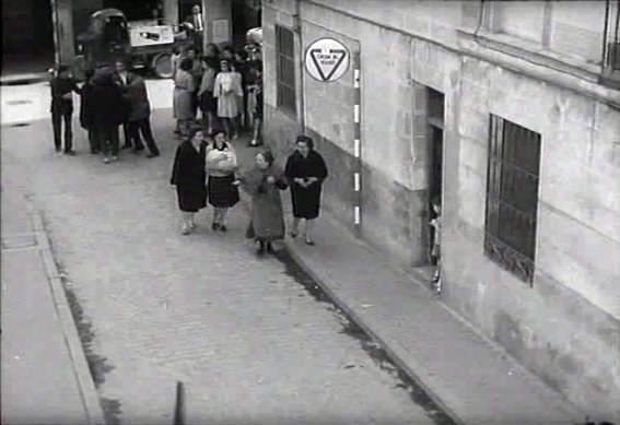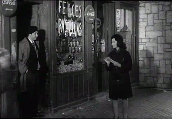 ¿Se rodaron los planos de esta tienda de ultramarinos en Alcalá? Ciertamente entonces existían establecimientos similares en ella, aunque mi opinión es que no. Asimismo, si bien no puedo hablar del año del rodaje ya que entonces tenía cuatro o cinco años, en los años posteriores, cuando ya conservo suficientes recuerdos en mi memoria, no me consta que hubiera ninguna tienda de ultramarinos en la calle Escritorios.