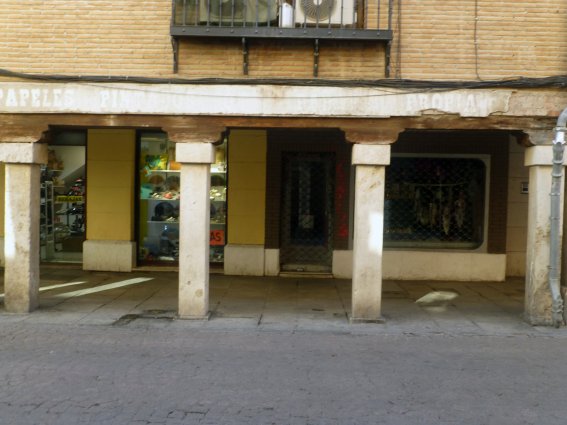de la calle Mayor desde el escaparate de La Fuencisla, con soportales pero sin