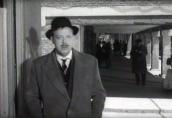 Reconstruyendo la escena el párroco vendría por la calle Nueva desde la calle Santiago, encontrándose con el usurero en la confluencia con la calle de Esteban Azaña. Este último semeja venir de una calle inexistente que prolongaría a la de Esteban Azañá, aunque en realidad se trata del rincón de la Mutual Complutense donde estaría situada la cámara. Tras despedirse, don Carmelo se marcha por la calle de Esteban Azaña en dirección a la plaza de Palacio, mientras el sacerdote parece tener intención de continuar por la calle Nueva aunque el corte de la escena impide averiguarlo. En cualquier caso, tal como he comentado antes resulta inútil intentar encontrar una lógica a itinerarios que en realidad suele ser una superposición de escenas dispares.