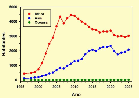 Estadísticas por continentes: África, Asia y Oceanía