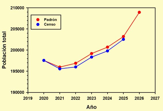Respecto a la cifra de población que acabe dando el INE para 2026 tan sólo podemos especular, pero hay que tener en cuenta que el padrón municipal creció a lo largo de 2025 -siempre según los datos del padrón- en 5.735 habitantes, una subida considerable debiéndonos remontar veintiún años atrás hasta 2005 para encontrar una cantidad mayor; aunque el dato de 2005 corresponde al censo y no al padrón, en ese año ambos coincidieron.