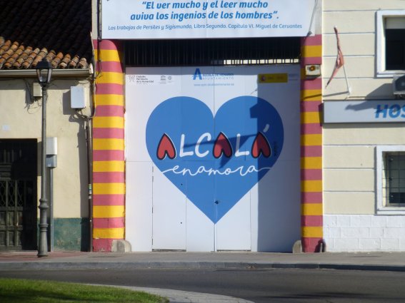 El nuevo grafiti, a diferencia del anterior, no hace alusión a Cervantes ni al Quijote, ya que reproduce el logotipo Alcalá enamora utilizado por el Ayuntamiento para la promoción turística de la ciudad. No obstante el recuerdo cervantino se mantuvo en la parte superior del portón, anteriormente ocupada por una filigrana de la citada edición del Quijote, con la reproducción de una cita tomada no de éste, sino del capítulo VI del libro segundo de Los trabajos de Persiles y Sigismunda: El ver mucho y el leer mucho aviva los ingenuos de los hombres. Lo cual, en estos tiempos de embrutecimiento por las redes sociales, resulta más actual que nunca.