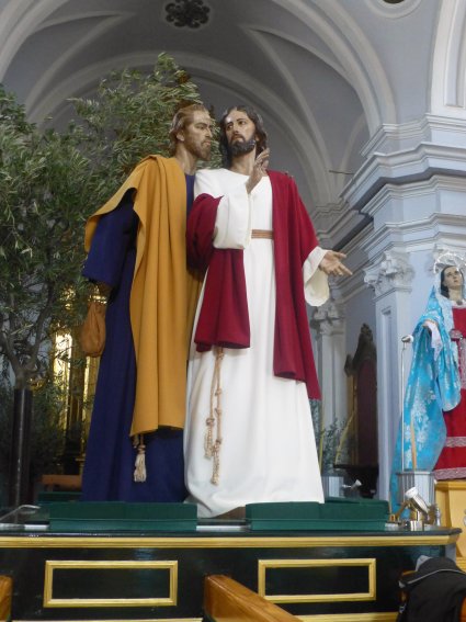 Acto seguido vendría La Última Cena que, tal como he comentado, contó en Alcalá con una cofradía propia que aparece reflejada en una relación de cofradías radicadas en el desaparecido convento de San Diego fechada en 1810. Lamentablemente no sólo no he podido averiguar si procesionaba en Semana Santa, sino que además su rastro se pierde por completo a raíz de la desamortización del convento un cuarto de siglo más tarde, sin que se conozca cual pudo ser el paradero de las imágenes.