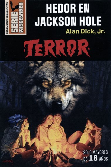 El neobolsilibro de Alan Dick, Jr. lleva por título Hedor en Jackson Hole, y al igual que los anteriores está influenciado no sólo por los bolsilibros clásicos, sino también por el cine de serie B, en este caso por las producciones -o subproducciones- gore que también tuvieron su momento de gloria en las décadas pasadas. En realidad no se trata de un relato de terror puro, sino más bien de un híbrido entre el terror y las novelas de intriga al estilo de las de Agatha Christie o Simenon en las que hay que descubrir quien es el asesino. Y por si fuera poco la portada es obra del prestigioso dibujante Enric Torres-Pla (Enrich), todo un lujo teniendo en cuenta que estamos hablando de uno de los más renombrados ilustradores de portadas de España, incluyendo entre múltiples trabajos muchas de la revista Nueva Dimensión.