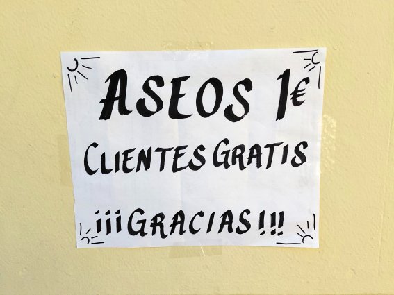 No se trata desde luego de un motivo de mofa, pero lo que me ha movido a traer a esta sección el mensaje de la fotografía, escrito con rotulador en un simple folio y pegado en la fachada de un bar, ha sido su redacción ya que, saliéndose de la habitual sobriedad del mensaje, su autor ha optado por una fina ironía para recordar algo que debería ser evidente para todos.