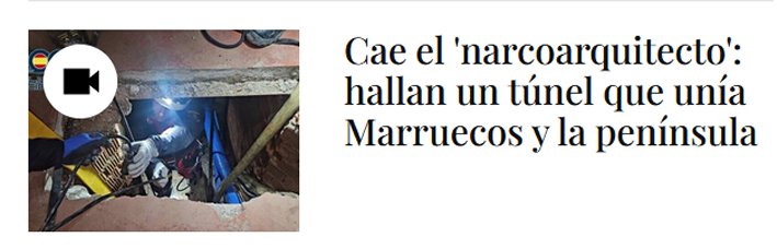 Así pues el pretitular -llamémosle así- con el que me encontré en los titulares de El Confidencial el 31 de marzo de 2026 no podía ser más espectacular: lo que a nivel de gobiernos era en la práctica inviable, la construcción de un túnel uniendo Marruecos con la península -la península, recalco, no España puesto que Ceuta y Melilla también forman parte de nuestro país- lo habría resuelto por su cuenta y riesgo y a nivel particular un narcotraficante... menudo notición.