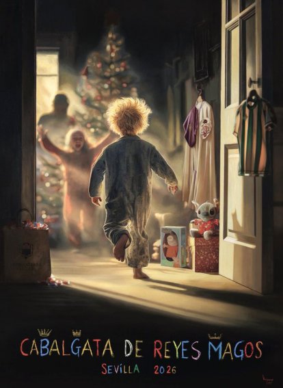 La noticia fue publicada el 18 de noviembre de 2025 en EL PAÍS bajo el título El polémico cartel de la cabalgata de Reyes de Sevilla: muestra una camiseta del Betis y una túnica de la Hermandad de la Macarena. Ya en el artículo se explicaba que el Ayuntamiento de Sevilla había encargado al pintor Fernando Vaquero, un artista local, el cartel para la cabalgata de Reyes de 2026 que reproduzco aquí. Se trata de un óleo sobre lienzo, realizado con una excelente técnica y cuidado diseño, que representa una tierna escena típicamente navideña, la de los niños acudiendo alborozados al lugar donde los Reyes Magos han depositado los regalos.