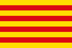 Ya en España nos encontramos con las banderas de las cuatro autonomías correspondientes a los reinos de la antigua Corona de Aragón, Aragón, Cataluña, Valencia y Baleares que, con algunas variantes, están basadas en el estandarte de sus monarcas, una sucesión alternada de cinco barras horizontales amarillas y cuatro rojas. Asimismo las heráldicas provinciales y locales de estas cuatro regiones están muy influidas por este estandarte, al igual que el Rosellón francés.
