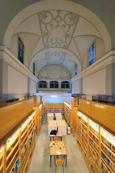 Al adaptar el edificio la Universidad para su nuevo uso se desacralizó la capilla convirtiéndola en biblioteca y sala de investigación, conservándose la estructura interna a la que se dotó una apariencia más acorde con su apariencia original.