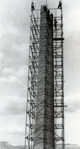 La chimenea de la cerámica Estela en construcción. Alcalá habla, hoy es ayer. OLMO, Ramón de. Ayuntamiento de Alcalá de Henares (2006). Colección Lemarmó |