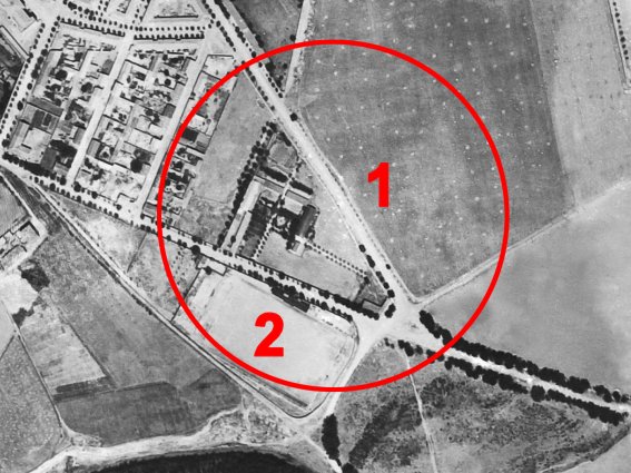 de una fotografía aérea de 1953. El círculo enmarca la