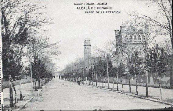 La otra actuación fue sobrevenida y no fruto de una decisión premeditada. Al quedar la estación en un lugar entonces apartado del núcleo urbano, surgió la necesidad de convertir en un paseo el tramo del antiguo camino de Gilitos que conducía desde los Cuatro Caños hasta este antiguo convento, cortado ahora por la vía. El paseo de la Estación pronto se convirtió en el eje de una modesta expansión urbanística, siendo éste o sus alrededores el lugar elegido para construir sus residencias por varias de las familias acomodadas de Alcalá destacando entre ellas el emblemático Hotel Laredo, a las que se sumaría ya en 1905 el colegio de las Adoratrices. Aunque se edificó por ambas márgenes del paseo, el crecimiento de este ensanche tuvo lugar principalmente en dirección a las calles Cánovas del Castillo y Flores, fusionándose el nuevo barrio con el antiguo arrabal. No obstante, las calles de San Isidro, Eras de San Isidro y el tramo de Navarro y Ledesma que discurre entre la calle Flores y la Vía Complutense -el otro es mucho más reciente- aparecen ya en el plano de Francisco Coello de 1853 anterior a la construcción del ferrocarril, y por lo tanto anterior también al paseo de la Estación.