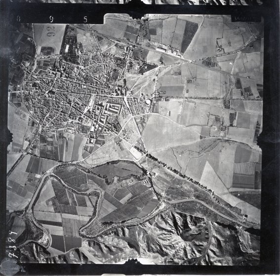 Pero no nos adelantemos y veamos lo que pasó en esta década. Para ello nuestra guía va a ser el ya citado libro Análisis de Alcalá de Henares, que refleja al menos parte de estos años. Es necesario advertir que, pese a haber sido publicado en 1948, los datos que recoge son algo anteriores e incluso, en el caso del plano de ca. 1928 en dos décadas. Pero ésta es una excepción, puesto que el resto de los planos son más recientes aunque, por algunos detalles que explicaré más adelante, podrían datarse con anterioridad a 1943 pero con posterioridad a la Guerra Civil. También contamos con una fotografía aérea de la totalidad de la ciudad lamentablemente sin fechar, aunque todo parece indicar que corresponde también a los años inmediatamente posteriores al final de la guerra.