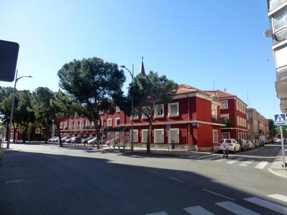 También estaba terminado el barrio comprendido entre Giner de los Ríos y el paseo del Val, incluyendo las calles de Juliana Merino y Manuel Merino. El resto de la manzana hasta la plaza de la Juventud estaba en su mayor parte sin construir, aunque se aprecian varios edificios probablemente de uso agrícola. En los terrenos situados entre la calle de Fernán Falcón y el paseo de Aguadores existían unas edificaciones también de posible uso agrícola; en ese lugar, aproximadamente donde ahora está el campo de fútbol, se asentaría años más tarde el barrio de la Merced, un conjunto de viviendas para funcionarios de prisiones que fueron demolidas cuando se construyeron unas nuevas junto al Archivo de la Administración al final del paseo de Aguadores, entre éste y la calle de Santo Tomás; pero su construcción debió ser posterior a la fotografía, puesto que no aparecen en ésta.
