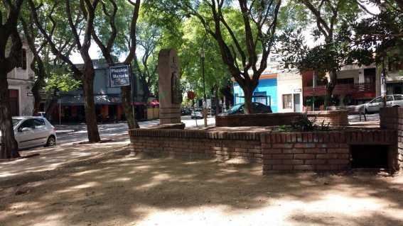 La estela de Manuel Azaña está situada en la plaza del mismo nombre, una recoleta plazuela próxima al bulevar General Artigas, un importante eje viario situado en el ensanche decimonónico de la ciudad, a algo más de kilómetro y medio de Punta Carretas -o Punta Brava-, la península que a modo de espolón se adentra en el Mar del Plata marcando el punto más meridional de la capital uruguaya.