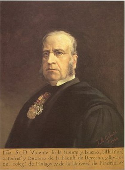 Conviene advertir que, aunque la universidad complutense se había extinguido en 1836 coincidiendo con la creación de su heredera, la Central madrileña, algunos de sus colegios menores, al ser fundaciones particulares, persistieron a duras penas durante algunos años más, si bien adscritos ya a la nueva universidad de la capital española. Éste fue el caso del colegio de Málaga, en el que Vicente de la Fuente desempeñó el cargo de rector entre 1838 y 1842, correspondiéndole la penosa responsabilidad de cerrar la centenaria fundación del obispo Moscoso. Esta circunstancia ha originado una llamativa confusión en algunas de las fuentes consultadas las cuales le hacen rector de la universidad de Málaga, algo de todo punto imposible dado que esta institución docente no fue creada hasta el año 1972.