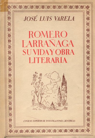 2 VARELA, José Luis. Vida y obra literaria de Gregorio Romero Larrañaga. Instituto Miguel de Cervantes. Consejo Superior de Investigaciones Científicas. Madrid, 1948.