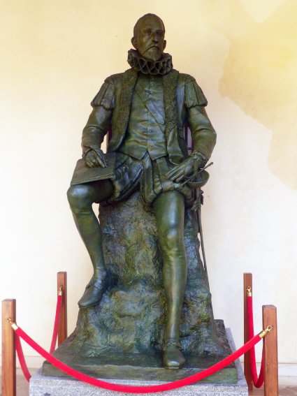 Estatua de la plaza de Cervantes. Vista general y detalle |