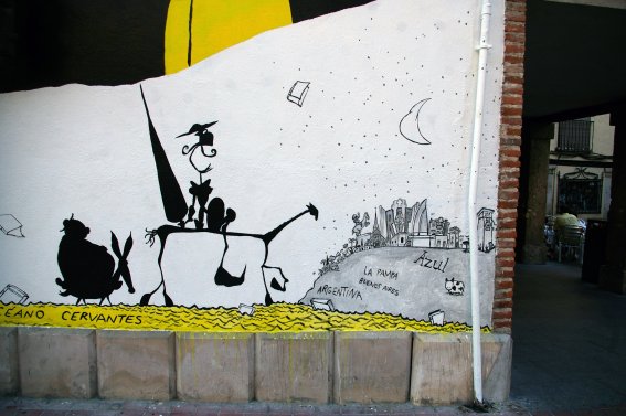 Este mural, ya deteriorado, fue reemplazado por un espectacular grafiti realizado por el prestigioso ilustrador argentino Miguel Rep en la medianería de la Casa Tapón que da a la plaza de los Santos Niños, el cual fue inaugurado el 13 de julio de 2011 en conmemoración del hermanamiento entre Alcalá y la ciudad argentina de Azul, famosa por su Festival Cervantino.