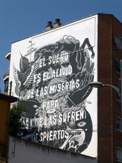 Cuatro meses más tarde, en julio de 2017, Boa Mistura pintó un segundo mural en la medianería opuesta del mismo edificio orientada en dirección este. Su estilo es similar, también en blanco y negro, y en esta ocasión reproduce una frase tomada del capítulo LXX de la segunda parte del Quijote: El sueño es el alivio de las miserias para los que las sufren despiertos.