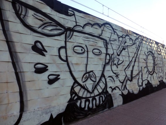 Grafiti del instituto Pedro Gumiel. Vista general y detalle |