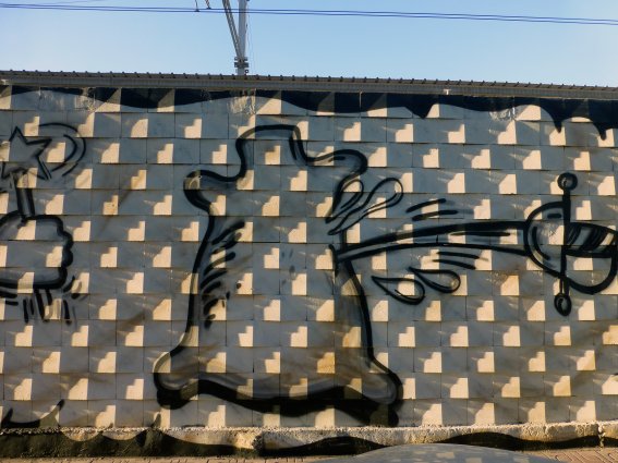 Arriba, motivo central del grafiti de la escuela infantil Los Molinos. Abajo, motivos laterales |