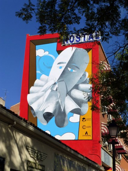 Cinco años más tarde, en junio de 2016 y dentro de los actos conmemorativos del cuarto centenario del fallecimiento de Cervantes, el Ayuntamiento encargó al colectivo Alameda Factory la confección de un mural, también de gran tamaño, en la medianería lateral del hostal El Torero, junto a la Puerta de Madrid. El mural, obra de Ana María Valle, Francisco José Valderrama y Jesús Martínez Campos, reproduce un dibujo original de la artista búlgara Kapka Kaneva representando a Cervantes, y se complementaba con el portón del antiguo almacén de Tabacalera, decorado con la primera página de la edición del Quijote de 1605. Esta iniciativa supuso la primera intervención dentro de un plan que contemplaba adornar con un total de siete pinturas murales los diferentes distritos de la ciudad.