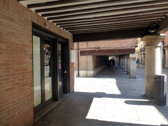 de la calle Mayor desde el escaparate de La Fuencisla, con soportales pero sin