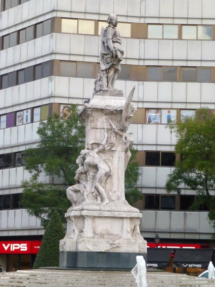 No obstante su primer asentamiento en la glorieta homónima tampoco se correspondía con la actual, ya que inicialmente la estatua fue colocada en la confluencia de las calles Fuencarral y San Bernardo hasta que en noviembre de 1999 fue desplazada a la rotonda central de la plaza, donde hoy continúa estando.