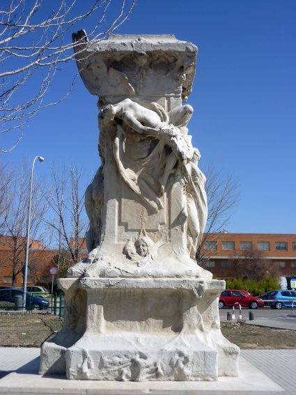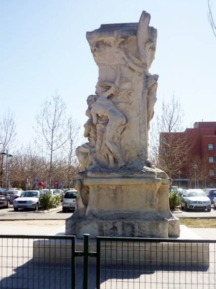 Indagando encontré el dato de que se trataba del pedestal original de la estatua de Quevedo situada en la glorieta madrileña de su nombre, obra nada menos que del conocido escultor Agustín Querol, el cual había sido reemplazado por una réplica a causa de su deterioro.