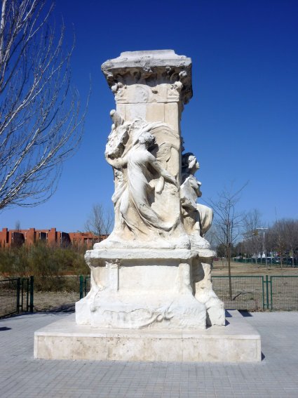 Para salir de dudas, decidí acercarme a la glorieta de Quevedo y comprobar si ambos pedestales eran o no idénticos; y en efecto lo eran, aunque el alcalaíno presentaba un mayor grado de deterioro que el madrileño confirmando la hipótesis del cambio del original por una copia. La pregunta inmediata era evidentemente cuando pudo tener lugar este cambio, para lo que conviene hacer una breve reseña histórica de sus avatares a lo largo del tiempo.