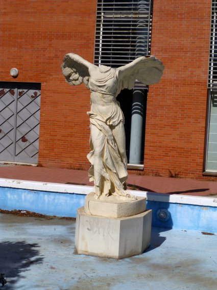 De fecha indeterminada, pero asimismo de probable factura reciente, es la copia de la famosa Victoria de Samotracia, una de las más conocidas esculturas griegas, cuyo original se conserva en el Museo del Louvre. Está situada junto a los edificios de la residencia universitaria, y aunque desconozco los detalles de su presencia allí, no cabe duda de que debe de ser recordada dada su notable calidad.