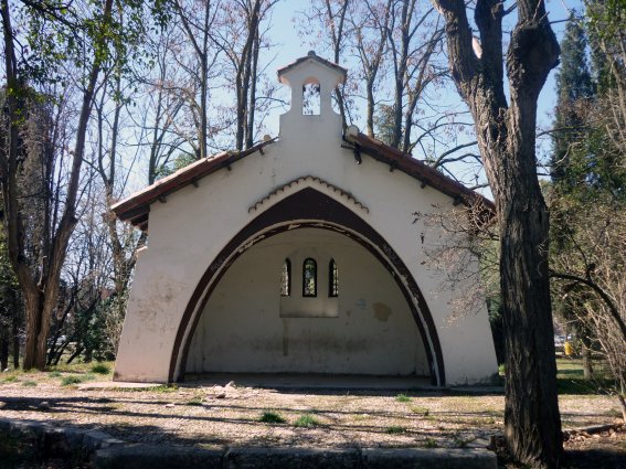 Comenzamos con la ya citada capilla de la base aérea, enclavada en el jardín existente junto a la rotonda de la antigua torre de control, frente al edificio de Biología Celular y Genética. Su pequeño tamaño y el hecho de estar abierta a modo de porche hace pensar que debió de ser ideada para oficiar misas de campaña, ya que en su interior apenas si cabría nadie además del sacerdote oficiante.