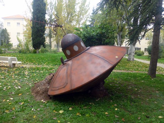 El platillo volante, una lograda réplica de los que aparecían en las añejas películas de ciencia ficción de serie B, tan sólo estuvo unos días en este lugar ya que fue trasladado a la plaza de la facultad de Ciencias, lugar que cabe suponer será su ubicación definitiva.