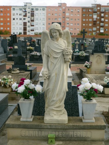 Huelga decir que he centrado principalmente la atención en esta zona del cementerio, dado que las ampliaciones modernas no muestran especial interés al contar, por lo general, con una iconografía funeraria realizada en serie por los talleres marmolistas, algo sin duda mucho más democrático que en tiempos de nuestros bisabuelos, en los que muchas tumbas humildes carecían incluso de lápida, pero bastante menos atractivo desde un punto de vista artístico, aunque existen excepciones que, pese a proceder de un molde, poseen un aceptable valor estético.