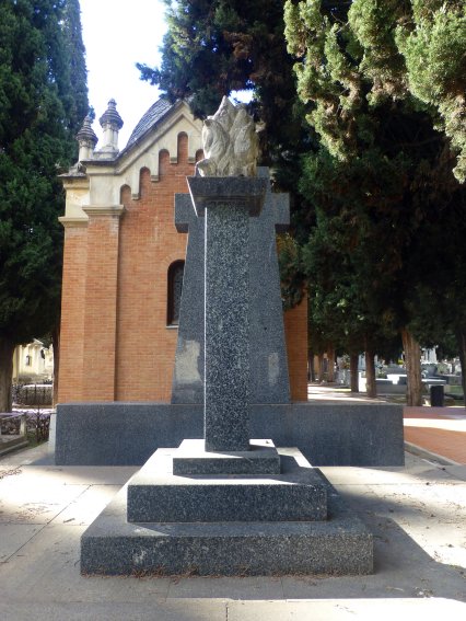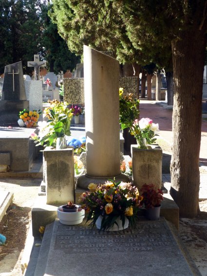 En el cementerio complutense nos encontramos con otro monumento funerario interesante no por su calidad artística, sino por su singularidad al tratarse de un enterramiento laico anterior a la decisión del Concilio Vaticano II de levantar la prohibición de enterrar a los no católicos -y a los que por distintos motivos, como los suicidas, la Iglesia consideraba que habían muerto en pecado- en el denominado camposanto, todos los cuales eran desterrados, en una discriminación post mortem, a los cementerios civiles.