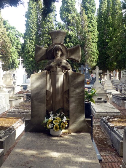 En cualquier caso, si visitamos hoy el cementerio y nos centramos en su parte más antigua, es decir, la procedente de finales del siglo XIX y principios del XX, nos podremos encontrar con unas muestras de arte funerario ciertamente notables y, paradójicamente, muy poco conocidas, algo que deseo subsanar en lo posible con estos artículos.