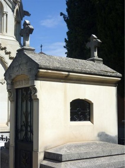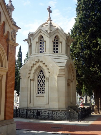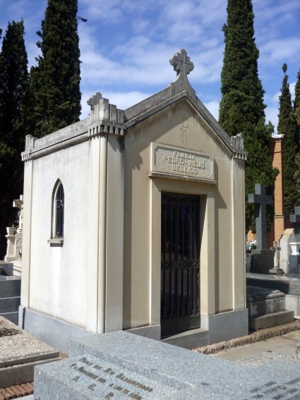 Hecha esta pequeña aclaración, conviene repetir lo que ya había explicado en el primer artículo: aunque el cementerio fue inaugurado, en 1834 con una extensión mucho más reducida, lo que vemos ahora -me refiero, claro está, a la parte más antigua del mismo, no a las ampliaciones posteriores- es fruto de una profunda remodelación realizada entre 1895 y 1903, por lo que podemos afirmar que la práctica totalidad de los elementos arquitectónicos que se conservan en la actualidad proceden de la época comprendida entre finales del siglo XIX y los primeros años del XX.