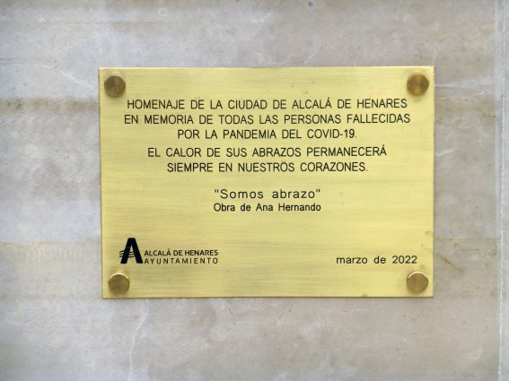 Últimamente parece ser que en Alcalá nos estamos acostumbrando a las repeticiones, al menos en lo que a esculturas y monumentos se refiere. El 26 de marzo de 2022, casi año y medio después de que la empresa que gestiona el Cementerio Jardín inaugurara el Memorial en recuerdo a las víctimas del Covid-19, el Ayuntamiento hizo lo propio eligiendo como ubicación la plaza interior de la Puerta de Madrid y como motivo escultórico una réplica de En un abrazo. Eso sí, dentro del ámbito de la escultura contemporánea se aplican unos criterios bastante generosos en lo que se refiere a la originalidad de una obra, ya que se consideran originales hasta un total de siete piezas salidas del mismo molde, siendo copias a partir de la octava. Y ésta es sólo la cuarta.