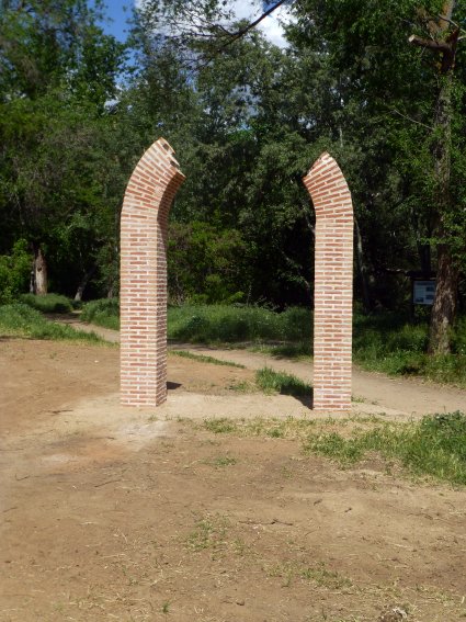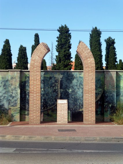 Un segundo memorial de idéntico diseño fue levantado junto a la tapia lateral del cementerio que linda con el paso elevado, ya que también allí se ejecutaron fusilamientos. Éste fue más tardío que el anterior y quedó interrumpido durante bastante tiempo a causa de la pandemia de covid, inaugurándose finalmente el 21 de noviembre de 2021, tres años y medio después del anterior. Al igual que en su gemelo del río la placa original de metacrilato estaba adosada a uno de los pilares y en poco tiempo quedó deteriorada por la intemperie, por lo que fue reemplazada por otra más resistente colocada en esta ocasión en un pequeño pedestal, también de ladrillo, que se construyó bajo el arco. En ella se lee el siguiente texto: