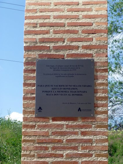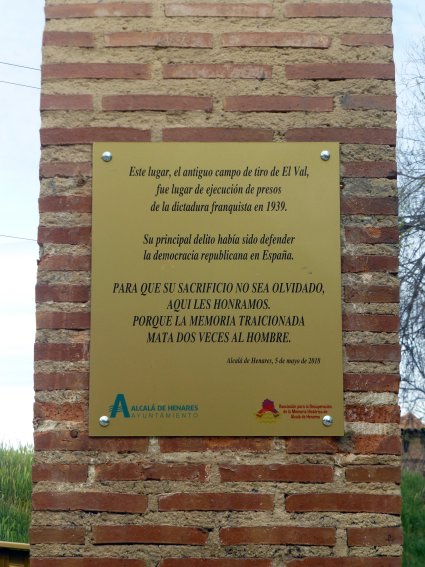 Trece años más tarde, el 5 de mayo de 2018, se inauguró en el paraje conocido como la Playa de los Alemanes un Memorial en recuerdo de los fusilados en los años inmediatamente posteriores al final de la Guerra Civil. Este lugar se encuentra situado junto al Henares a unos centenares de metros aguas arriba de la ermita de la Virgen del Val, y durante bastantes años fue utilizado como campo de tiro militar aprovechándose las terreras que forman los cerros en la orilla opuesta, cumpliéndose en él parte de las ejecuciones que siguieron a los juicios sumarios -y por lo general sin garantías jurídicas de ningún tipo para los reos- que tuvieron lugar en Alcalá durante los primeros años de la dictadura franquista.