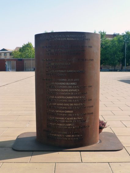 El 16 de septiembre de 2022, en presencia de la ministra de Defensa Margarita Robles y otras autoridades, se inauguró en la plaza de la Paloma un monumento en recuerdo a las víctimas de ETA vinculadas con Alcalá, tanto las nacidas o residentes aquí como las que sufrieron un atentado en nuestra ciudad. El monumento está fechado en junio de 2019, debiéndose estos tres años largos de retraso a la interrupción provocada por la pandemia de covid.