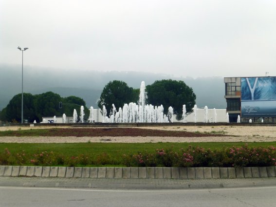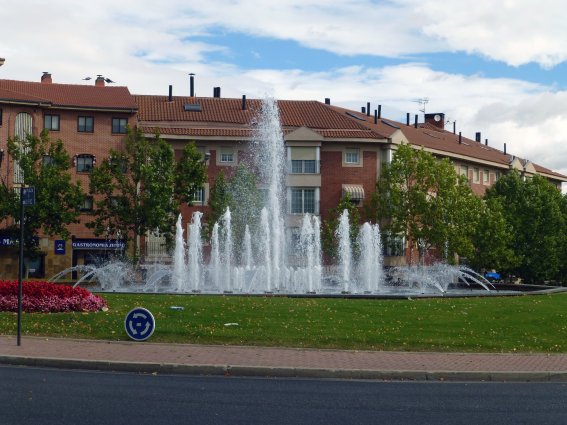 La fuente que la decora tiene una historia curiosa. Ya entrado el siglo XXI, al construirse la rotonda, se levantó en ella una especie de arco triunfal -de alguna manera tengo que denominarlo- de hormigón que más bien parecía el encofrado de una obra, debajo del cual brotaban unos modestos surtidores de agua. Pasado el tiempo el resultado no debió de gustar demasiado a los responsables del ornato urbano puesto que, en el verano del 2011, ésta fue desmontada instalándose en su lugar una nueva fuente esta vez sin elementos artísticos salvo los propios chorros de agua, esta vez de mayor empaque que los anteriores.