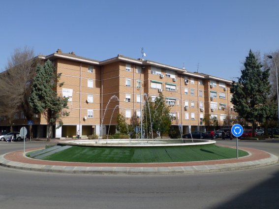 Continuando por la avenida de Madrid llegamos a la glorieta de Arganda, donde ésta se cruza con la avenida de Roma, que conduce al puente Zulema, y la de Carlos III, que lo hace al barrio de la Garena.