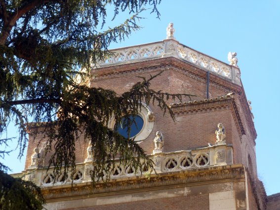 No acaba aquí la historia. Al restaurarse el torreón en la década de 1940 se repuso, como ya he comentado, la crestería seudogótica junto con los escudos de Martínez de Contreras, los cuales fueron sustituidos en 2006 por los del obispo que regía entonces la diócesis complutense, Jesús Catalá, mientras los restantes sí fueron respetados. He de reconocer, eso sí, que no me percaté de la reposición de las gárgolas y del cambio de los escudos hasta que no me puse a escribir este artículo.