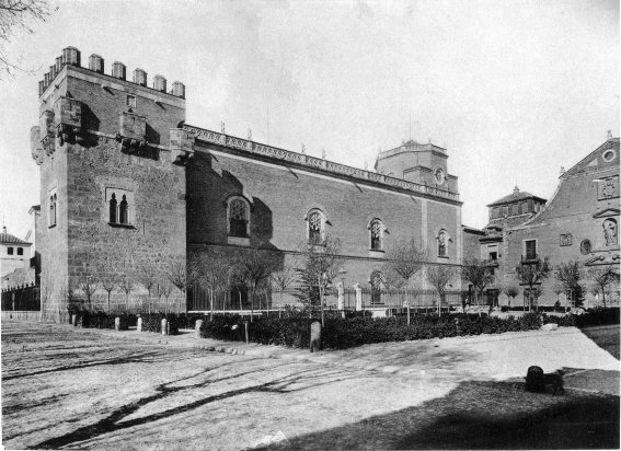 Sin embargo, la realidad es bastante más compleja. Para empezar hay que tener en cuenta que estas gárgolas de medievales tan sólo tienen la apariencia, puesto que tanto unas como otras proceden de la restauración a la que fue sometido el Palacio en la segunda mitad del siglo XIX para adaptarlo como sede del Archivo General Central del Reino, función que desempeñaría hasta el incendio de 1939. Tal como se puede comprobar en una fotografía de Laurent anterior a estas obras de restauración, el ala este del Palacio, situada a la derecha de la plaza de armas, presentaba un aspecto muy diferente del actual, estando rematado el Torreón de Tenorio por un campanario barroco con chapitel de pizarra. Buscando dotar a las edificaciones de esta zona del Palacio de un aspecto medieval del que carecían a causa de las intervenciones de siglos posteriores, se demolieron el campanario del Torreón de Tenorio, el segundo piso de la fachada mudéjar del patio de armas y el edificio que lo remataba por el sur, construyéndose en su lugar una nueva fachada a la que se remató, junto con la de la plaza de las Bernardas y el torreón ochavado, con unas cresterías de estilo gótico sobre las que se colocaron las gárgolas.