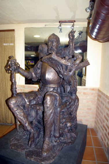 Lo curioso de esta escultura es que se trató de una iniciativa privada promovida por el propietario del restaurante Maimónides, el cual con toda lógica la colocó en el interior de este establecimiento hostelero. Así pues, aunque se encontraba en plena calle Mayor -concretamente en el número 45-, frente a la casa de Cervantes y a las esculturas hermanas, era necesario entrar en el local para poder contemplarla, algo que realmente merecía la pena. Lamentablemente el restaurante cerró en el verano de 2018, sin que tenga noticias del paradero de la estatua.