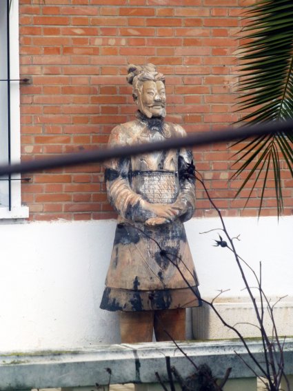 También cercano al Camarmilla, pero al otro lado de la vía del ferrocarril en el camino de las Callejuelas, encontré este guerrero de Xian en el patio delantero de la empresa de transportes Rioja.