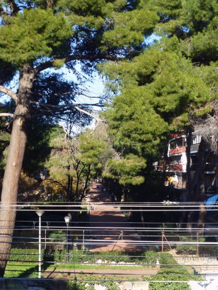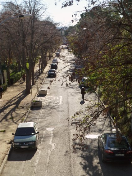 Vista actual del paseo de los Pinos por el lado del parque ODonnell (izquierda) y del Chorrillo (derecha) |